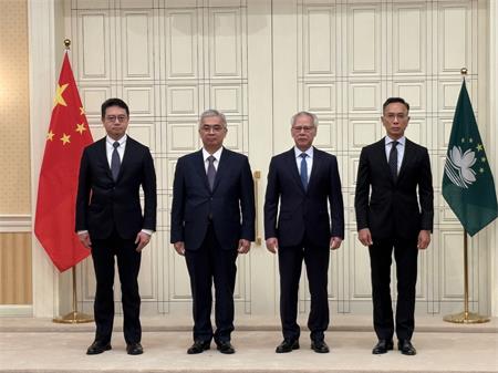行政長官岑浩輝與新任行政法務司司長黃少澤、新任保安司司長陳子勁、新任檢察院檢察長唐曉峰合影