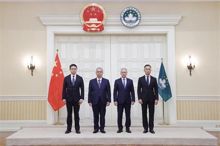 行政長官岑浩輝與新任行政法務司司長黃少澤、新任保安司司長陳子勁、新任檢察院檢察長唐曉峰合影