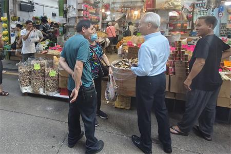 在政府總部與眾同樂後,岑浩輝還自個走訪義字街一帶買菜,