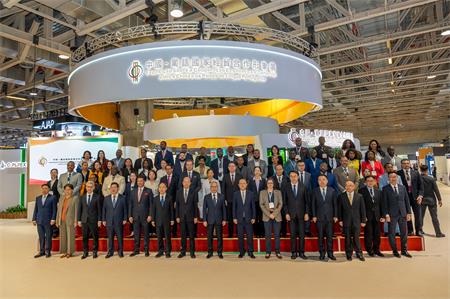 嘉賓在“中國—葡語國家經貿合作形象展”前合影