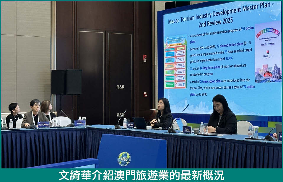澳門代表藉此國際性平台,深入了解亞太經濟合作組織旅遊工作組的最新動向,與各經濟體代表互動交流,汲取寶貴經驗,同時提升澳門在國際旅遊組織中的參與度,增進國際聯繫,助力推動澳門旅遊業可持續發展。