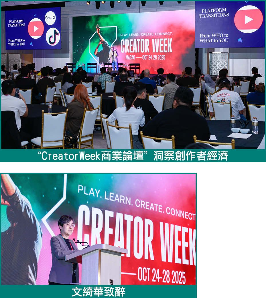 【本報訊】由旅遊局與國際媒體製作公司Branded聯合主辦的“2025澳門國際創作者大會”(CreatorWeek Macao 2025)亮點活動“CreatorWeek商業論壇”及“CreatorWeek創作者學院”10月27日及28日假澳門上葡京綜合度假村舉行,行業重磅嘉賓亮相主講,就創作者經濟與產業發展,分享真知灼見。