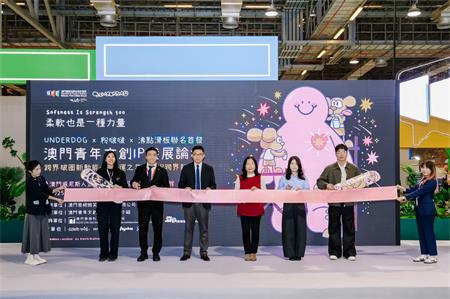 【本報訊】10月26日,由澳門拒絕微笑文化創意有限公司主辦,澳門青年文創IP協會(籌備小組)合辦,澳門特別行政區政府文化局、澳門特別行政區政府教育及青年發展局、澳門青年發展服務中心作支持單位的澳門青年IP發展論壇昨日假澳門國際品牌加盟展場地進行,澳門青年文創IP協會(籌備小組)推動的本地人氣IP品牌“UNDERDOG”、“粉啵啵”與內地專業體育品牌“沸點滑板”跨界聯名系列,今日在澳門國際品牌連鎖加盟展會(MFE)舉行首發儀式,吸引眾多文創愛好者及業界人士參與。活動獲UNDERDOG、粉啵啵家族、Psychos、沸點滑板IP支持,文化局文化創意產業促進廳廳長何鴻斌、教育及青年發展局青年發展處薛鳳翹代處長、招商局陳啟銘高級經理、澳門青年發展服務中心職務主管林海玲等嘉賓出席主禮。