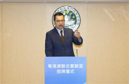 【本報訊】 “粵港澳聯合實驗室授牌儀式” 4日在澳門舉行。澳門科學技術發展基金(下稱“科技基金”)行政委員會主席余雨生和廣東省科學技術廳廳長王月琴出席儀式,並向獲批設立的兩所粵港澳聯合實驗室正式授牌。澳門中聯辦經濟部代表張冠宇、澳門大學校長宋永華、澳門科技大學校長李行偉、經科局局長邱潤華、教青局副局長丁少雄、藥監局副局長李世恩、郵電局行政委員楊富榮、珠海市科創局局長黃南蔭、深合區經發局副局長黃中堅等多位嘉賓共同出席見證。