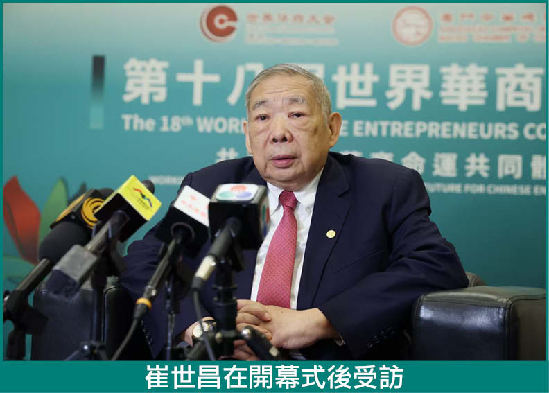 【本報訊】第18屆世界華商大會組委會主席、澳門中總會長崔世昌接受傳媒訪問時表示,本屆大會落戶澳門舉行,是一次向外展示澳門作為“一中心、一平台、一基地”的特色與綜合實力的良機,以及發揮澳門內聯外通優勢。同時希望出席大會的華商感受到澳門多元旅遊元素,以及豐富的文化底蘊,借此講好中國故事、澳門故事。