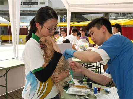 市政署獸醫於毛孩預備班流動資訊站為登記犬隻注射狂犬病疫苗