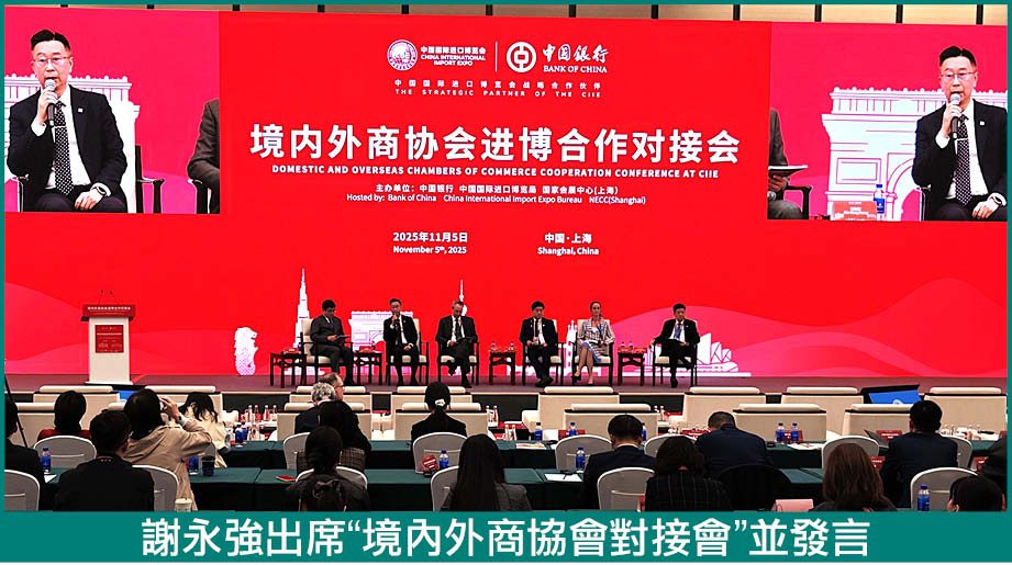 參會期間,謝永強出席中國國際進口博覽局及中國銀行共同舉辦的“境內外商協會對接會”並擔任發言嘉賓。他發言時表示,配合特區政府加快建設澳門科技研發產業園等四大重點工程項目,以及籌備落實政府產業基金與引導基金的工作,澳門招商局將舉辦更多以高新技術、中醫藥大健康和中葡商貿為主題的各類經貿展會活動;進一步深化與澳門各大商協會的支持協作,鼓勵其用足用好進博會的國際化平台,並與澳門的中葡平台相結合,互利合作切實發揮“1+1”大於2的平台功能,推動兩大平台實現戰略協同,在促進澳門經濟適度多元發展的同時,更好地服務國家高水平對外開放大局。