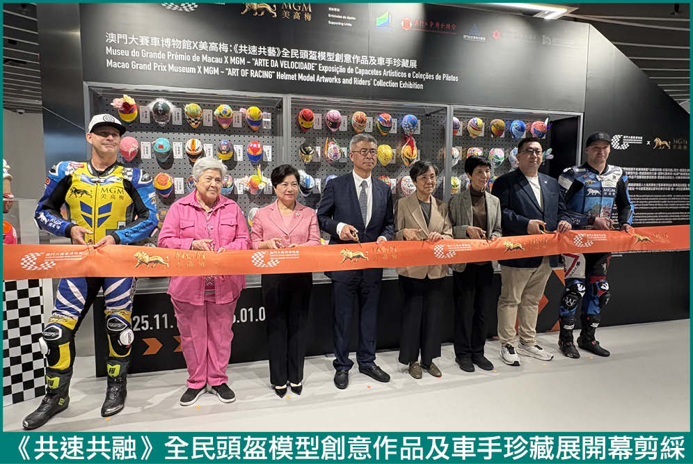 【本報訊】為進一步推動社會共融理念,美高梅與大賽車博物館攜手推出並獲得教青局、工會聯合總會、街坊會聯合總會、婦女聯合總會及扶康會大力支持的《共速共融》全民頭盔模型創意作品及車手珍藏展12日上午11時在大賽車博物館揭幕。展覽呈獻全民參與創作的頭盔模型與車手珍藏,展期由即日起至明年1月5日。旅遊局局長文綺華、工會聯合總會會長何雪卿、婦女聯合總會會長劉金玲、街坊會聯合總會副會長姚家鵬、扶康會會員大會主席飛迪華和美高梅中國控股有限公司總裁及首席運營官王志琪等出席開幕儀式。