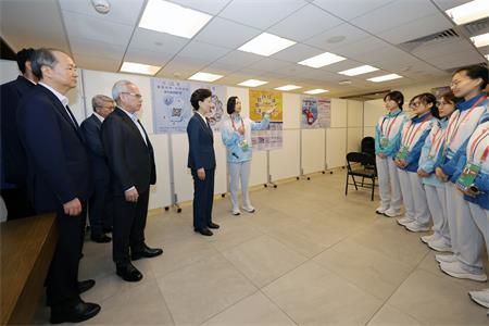 昨日上午,諶貽琴國務委員抵澳後,在行政長官岑浩輝、中央政府駐澳門特區聯絡辦公室主任鄭新聰陪同下,視察了十五運會乒乓球項目的舉辦情況及競賽設施,期間聽取中國乒乓球協會主席王勵勤介紹賽事概況。一行隨後到場館內的興奮劑檢查站視察,並探望在場工作的澳門賽區志願者。