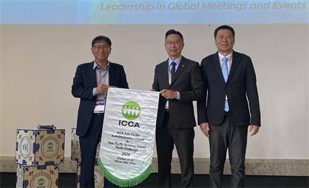 此行的重要成果之一,是本澳業界成功競投“2026 ICCA亞太商務會展發展論壇暨亞太商務會展活動挑戰賽”(ICCA AsiaPacific Business Events Development Forum & Asia Pacific Business EventsYouth Challenge) 首次落戶澳門。澳門招商局現場見證業界就落戶事宜簽署合作備忘錄,並參與授旗儀式。