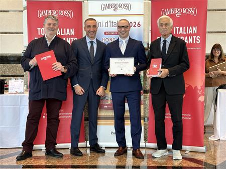 位於上葡京的高級意大利餐廳“當奧豐素1890”獲《Gambero Rosso 紅蝦評鑑》頒發最高等級“三叉”榮譽