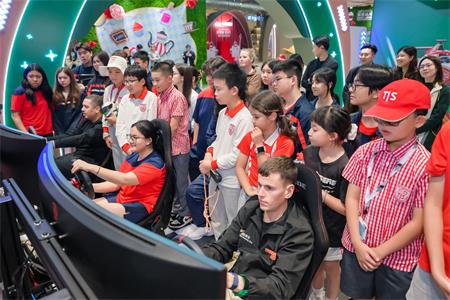 車手Alex Denning帶領本地學生於上葡京的「運動狂熱區」感受賽車運動的魅力。