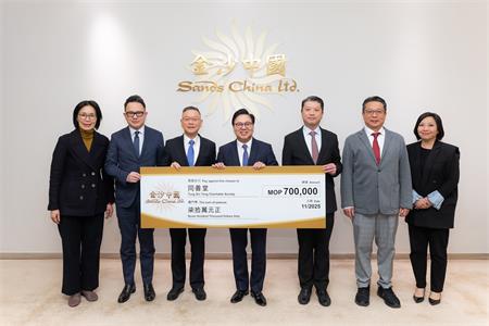 【本報訊】金沙中國有限公司於11月20日在澳門威尼斯人®舉行支票捐贈儀式,向澳門同善堂捐贈澳門幣70萬元,連續22年響應該社服機構的年度“沿門勸捐”籌款活動,全力支持同善堂各項慈善服務推展。