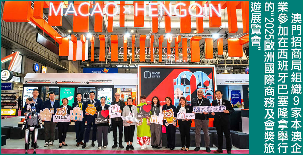 【本報訊】為招攬更多國際大型會展活動在澳門和橫琴舉辦,吸引更高質量企業落戶,澳門招商局於11月18至20日組織9家本澳企業,包括酒店、會展服務供應商及綜合旅遊休閒企業,參加在西班牙巴塞隆拿舉行的“2025歐洲國際商務及會獎旅遊展覽會”(IBTM World 2025)(下稱“IBTM”)並設置“澳琴館”,藉此精準對接海外潛在客商,特別是葡語、西語國家的買家,推介了澳門與橫琴的會展環境及相關政策機遇。
