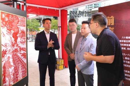 【本報訊】由澳門廣告商會主辦,文化發展基金資助的“紀念中國人民抗日戰爭暨世界反法西斯戰爭勝利80周年展覽”今日於友誼廣場隆重開幕。展覽以十大抗戰歷史節點為主線,通過剪紙藝術、AR互動及知識問答等創新形式,生動展現中華民族抗戰歷程,弘揚愛國精神。廣告商會會員大會主席黃義滿在致辭表示,“通過創新形式傳承歷史記憶,弘揚愛國精神。我們深知,這段艱苦和傷痛的抗戰歷史,不懂是中華民族的沉痛記憶,更是激勵後人自強不息、砥礪前行的民族振興奮鬥指南。”