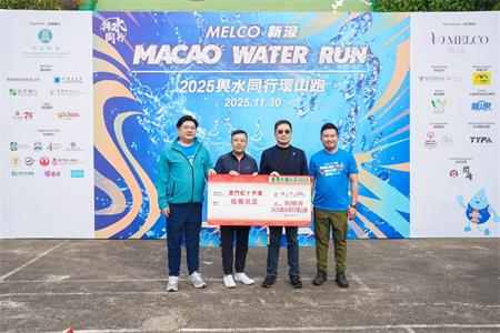 【本報訊】由誠樸勤集主辦、新濠博亞娛樂有限公司冠名贊助之“與水同行環山跑2025”11月 30日於黑沙水庫舉行。在活動前,由誠樸勤集創會會長馬志毅及會長黃昇雄代為把本次活動報名費收入合共澳門元伍萬元,轉給澳門紅十字會,為香港大埔五級火火災之用。