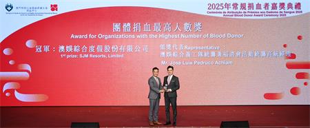 澳娛綜合獲頒“團體捐血最高人數獎”冠軍及“傑出捐血推動獎”