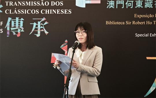 林穎娜致辭表示,展覽作為2025粵港澳文化合作會議的落實執行項目之一,旨在為觀眾提供深入了解珍貴古籍的路徑,善用兩地圖書資源,促進粵港澳大灣區的文化合作。她續稱,文化局及其公共圖書館將一如以往,致力將澳門打造成為一座更具文化魅力的“閱讀之城”,並和大灣區的其他城巿聯手,一同守護文化根脈,讓珍貴古籍中蘊藏的各種知識得以傳承,為國學傳承及推廣中華文化作出積極貢獻。