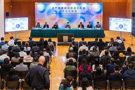 會上,文化局、旅遊局、土地工務局、公共建設局、交通事務局、市政署及中國旅遊研究院(文化和旅遊部數據中心)代表出席,向公眾介紹文化區項目的目標定位、建築選址、設施配套及營運管理等,及就相關內容聽取意見。與會者積極發表意見,均支持及認同文化區的規劃方向,主要就項目的空間規劃與交通配套,文化設施的功能互補、非遺展示空間及愛國愛澳教育基地的規劃建設,以及科技賦能文化創新、構建與文化區需求匹配的本地人才培養體系等方面提出建議。