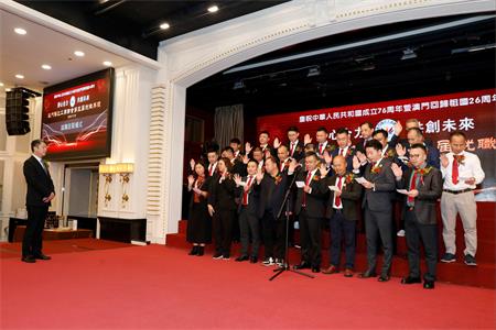 【本報訊】澳門陽江工商聯會於本月10日假澳門豪軒舉行“慶祝中華人民共和國成立76周年、澳門回歸祖國26周年聯歡晚會暨第五屆監察理事就職儀式”。中聯辦經濟部副部長楊全州,陽江市委統戰部常務副部長楊繼文,澳區全國人大代表、立法會議員敬何麟,澳門行政會委員、立法會議員宋碧琪、立法會議員李良汪、柳智毅、李居仁、陳禮祺,全國人宋大代表、陽江省會長,陽江市委統戰部副部長、陽江市工商聯黨委書記組林滔,陽江市僑聯主席鄺東曉,陽江市江城區委常委、統戰部部長莫卓姬,陽江市陽東區委常委、統戰部會長劉陽,陽西縣常獻會、統戰部部長張大公務部會春市兩季長熊祿洪,陽江濱海新區(陽江高新區)黨工委副書記、海陵試驗區黨工委副書記幹勁,陽江市政協常委、澳門陽江社團會俱樂部長廖王盛,廣東省政協委員、澳門陽江社團俱樂部主席黎鳴,陽江市協委會長、澳門江協委會委員、澳門大社社社長、東西國衛社卓舵,陽江市政協委員、澳門陽江青年聯合會理事長黃宇棋,陽江市政協委員,澳門陽江青年聯合會常務副會長蘇潤基,陽江市政協委員、澳門陽江同鄉會長敖卓源,陽江市及各區委、縣委、工商聯、僑聯以及本澳多名社代表等出席。由會長林振有率領執行會長鄭渭丈、常務副會長兼師黎鴻才、常務副會長陳永勤、董事長譚配妹、監事長唐德榮及全體理監事,在何敬麟監誓下宣誓就職。
