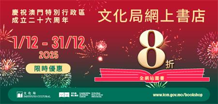 【本報訊】文化局網上書店“慶回歸限時優惠”將於12月31日完結,全網站所有圖書均可享有8折優惠;《文化雜誌》早期版本可享五折優惠,近期版本享九折優惠。此外,單筆訂單可獲贈“氹仔炮竹業書籤”乙份,數量有限,先到先得,送完即止,歡迎讀者網上選購圖書。