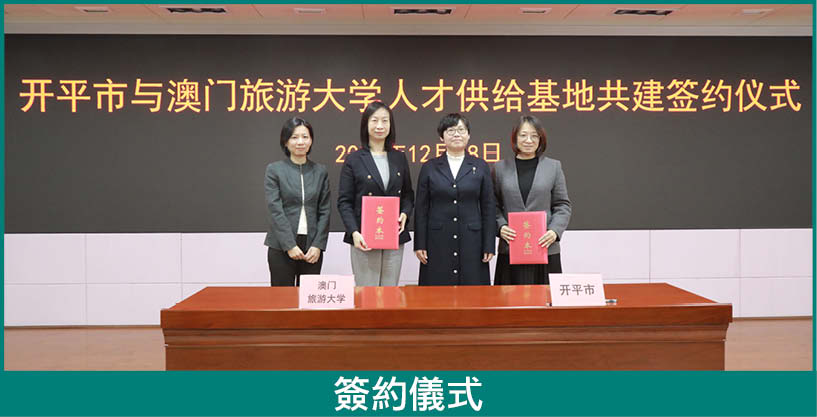 【本報訊】為深化澳門與粵港澳大灣區內地城市在旅遊教育與產業發展的聯動,澳門旅遊大學與江門開平市於12月18日在開平市人民政府舉行“開平市與澳門旅遊大學人才供給基地共建簽約儀式”。此次合作植根於兩地共同的文化榮譽與發展使命,旨在透過產教深度融合,探索世界文化遺產的可持續發展與活化路徑,為粵港澳大灣區培育文化旅遊專才。