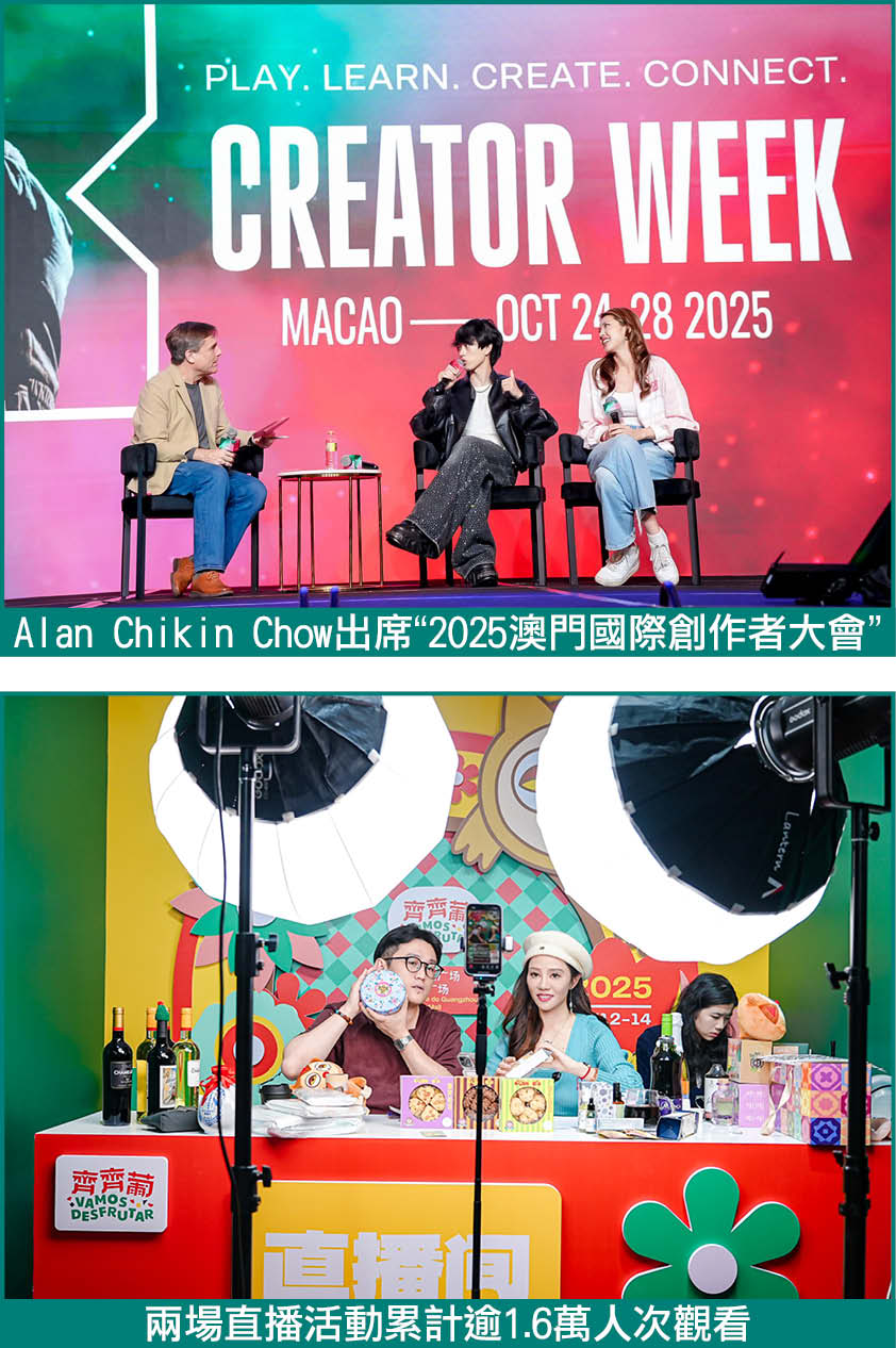 2025澳門國際創作者大會”今年10月在澳門舉行,Alan Chikin Chow受邀參與並在活動上分享創作經驗。他在訪問中特別提到,澳門戀愛巷中葡融合建築的獨特風格令人印象深刻,而路氹金光大道則是為Z世代量身打造的打卡場景。希望通過作品成功讓觀眾感受到澳門獨特的文化氣質與街區氛圍,加強一站式旅遊目的地印象。