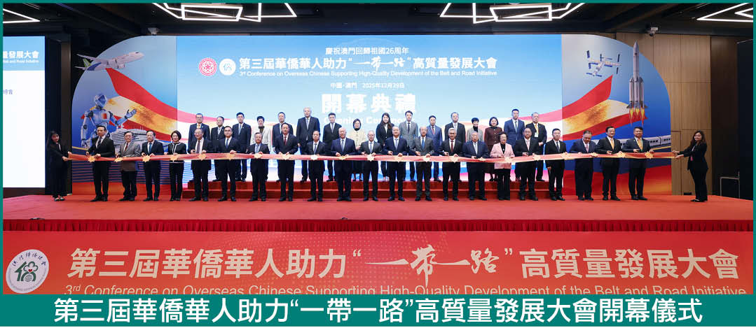 他又表示,澳門將於“十五五”持續發揮自身優勢,進一步完善政策支持體系,優化營商環境,為僑商僑領在澳投資興業提供更堅實的保障,支持僑界資源與澳門金融、科技、文旅等產業深度融合;同時,持續做好面向東盟、輻射葡語、西語國家的經貿合作平台,依託僑界橋樑作用,促進中外文明交流互鑒,講好中國故事、傳播澳門聲音,讓“共商共建共享”的理念更加深入人心,助力“一帶一路”建設跑出高質量發展的“加速度”。