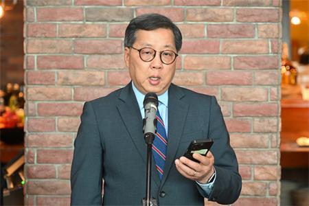 新聞局代局長黃樂宜在傳媒茶會上致辭。