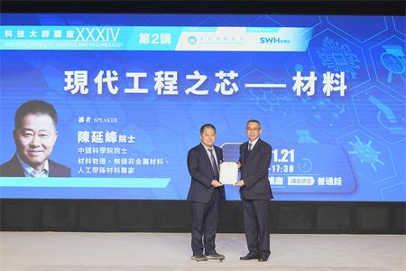 【本報訊】由澳門科技大學主辦的科技大師講座“現代工程之芯── 材料”,於2026年1月21日(星期三)下午在澳科大D座禮堂成功舉辦。本講座邀請到中國科學院院士,材料物理、無機非金屬材料、人工帶隙材料專家陳延峰院士主講。澳科大副校長姜志宏講座教授為本次講座致辭,並向陳院士頒發榮譽聘書及致送紀念品。