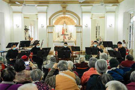 第二輪“愛社區樂同行”系列音樂會於今年1月21至23日期間,先後到訪扶康會朗程軒、瑪大肋納安老院、街總藝駿中心、仁慈堂安老院、悅暉護養院、聖瑪利亞安老院,為長者們帶來歡悅喜慶的中式經典與充滿異國風情的曲目,更演繹農曆新年應節樂曲《步步高》等,提早為各位長者送上新春祝福。演出洋溢溫馨融洽氣氛,廣受社區長者歡迎。