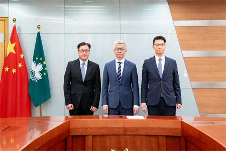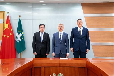經濟財政司司長戴建業、司長辦公室主任羅志輝與澳門金融管理局行政管理委員會主席黃善文合照