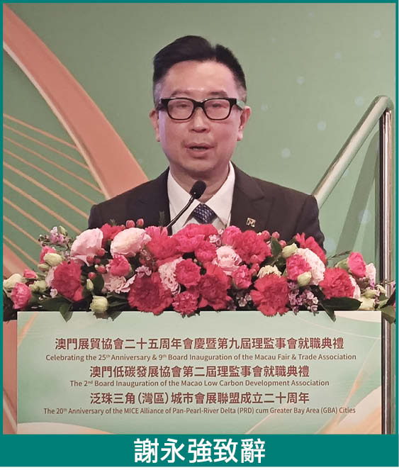 他認為,會展業作為澳門特區政府經濟適度多元發展的重點產業之一,歷經多年深耕,發展基礎日趨穩健紮實,具世界領先水平的軟硬件設施為承接各類國際會議及展覽提供了堅實保障,連續三年被權威媒體評為“最佳亞洲會議目的地”、“最佳會議商務城市”和“年會最佳目的地”,這當中無不凝結着展貿協會、泛珠三角(灣區)城市會展聯盟和澳門低碳發展協會,以及澳門全體會展從業者的奮進與智慧。