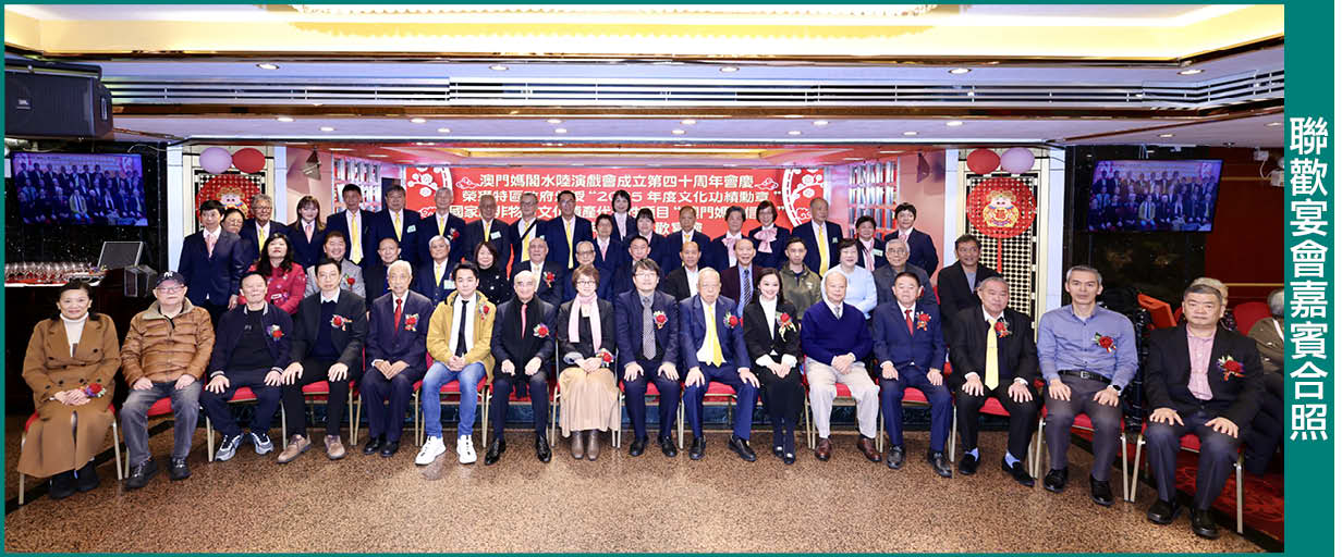 【本報訊】澳門媽閣水陸演戲會成立四十周年會慶暨乙巳年敬老聯歡宴會於2日晚假聯邦大酒樓舉行,會長蔡田田和理事長陳鍵銓分別藉著該會榮獲2025年度澳門特別行政區文化功績勳章感謝政府及社會各界長期的支持和認可,表示未來致力為弘揚媽祖精神、推廣媽祖文化繼續努力。