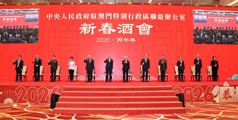【本報訊】2月5日下午,中央政府駐澳門聯絡辦公室舉辦2026年新春酒會。受中央港澳辦主任、國務院港澳辦主任夏寶龍委托,中央港澳辦副主任、國務院港澳辦副主任,中央政府駐澳門聯絡辦公室主任鄭新聰代表夏寶龍主任、中央港澳辦、國務院港澳辦和中央政府駐澳門聯絡辦公室向廣大澳門居民致以新春祝福。澳門特別行政區行政長官岑浩輝出席並致辭,全國政協副主席何厚鏵,前行政長官賀一誠,外交部駐澳門特派員公署特派員卞立新,解放軍駐澳門部隊司令員于長江、政委林慶華,中央政府駐澳門聯絡辦公室副主任黃柳權、呂玉印、張應杰,以及特別行政區立法、司法機構主要負責人,特別行政區政府主要官員,澳區全國人大代表、全國政協委員,特別行政區行政會委員、立法會議員,以及澳門社會各界代表人士約1300人出席酒會。