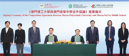 在澳理大校長嚴肇基、副校長李雁蓮、校務研究及協調部代部長李荔褀、培華中學校董會副主席李俊鳴、校監許樂敏,以及校監劉智龍的見證下,澳理大應用科學學院院長林燦堂與培華中學校長李秋林簽署《澳門理工大學與澳門培華中學合作協議》,標誌著兩校的人工智能教育合作正式啟動。