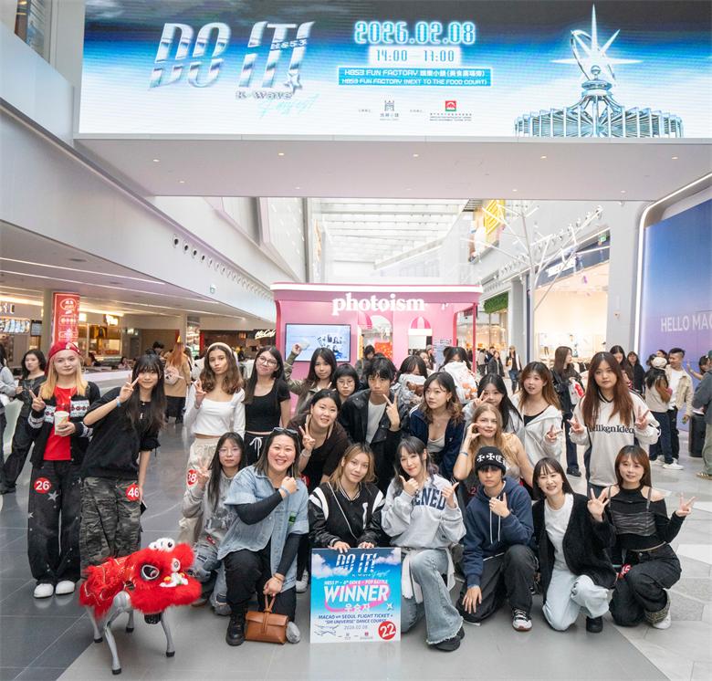 【本報訊】由澳門葡京人主辦、澳門旅遊局支持之“H853 K-WAVE韓粉日”於2月8日在澳門葡京人H853 Fun Factory娛樂小鎮圓滿舉行。活動以韓流文化為主題,結合K-Pop舞蹈、潮流表演及粉絲互動體驗,吸引大批舞蹈愛好者、市民及旅客到場參與,現場氣氛熱烈,充分展現澳門年輕活力的城市魅力,推動“旅遊+文化+演藝”的深度融合,進一步強化澳門“世界旅遊休閒中心”及“演藝之都”的城市形象。