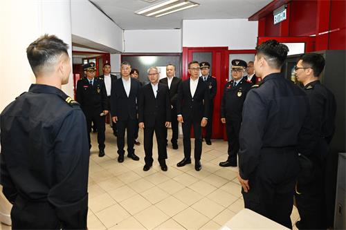 行政長官岑浩輝視察司法警察局,感謝當值人員辛勤付出,並致以新春祝福。