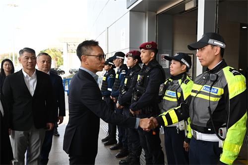 保安司司長沿途慰問執勤同事,肯定他們的工作貢獻並送上節日祝福