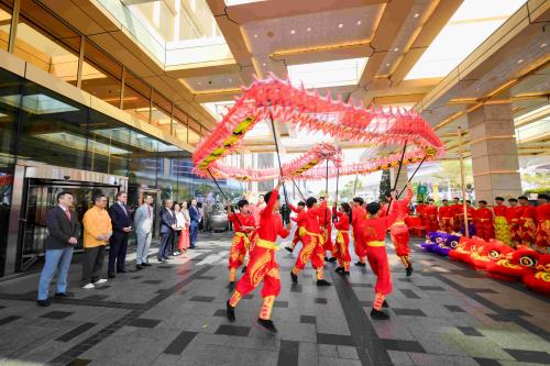 【本報訊】金獅開運,馬到福臨!美高梅於今天大年初五(21日)分別於美獅美高梅和澳門美高梅舉辦賀歲醒獅表演,由美高梅中國控股有限公司首席執行官及執行董事馮小峰,以及首席營運官田焓,聯同一眾管理層成員為八頭醒獅進行點睛儀式。隨著鑼鼓和爆竹聲響起,醒獅隊伍在濃厚的喜慶氣氛下躍動起舞,並穿梭酒店各處,為賓客帶來新春祝福。春節期間,美高梅將於旗下酒店及媽閣塘片區舉辦多項藝文節慶活動,歡迎市民和遊客參與,共賀新歲。