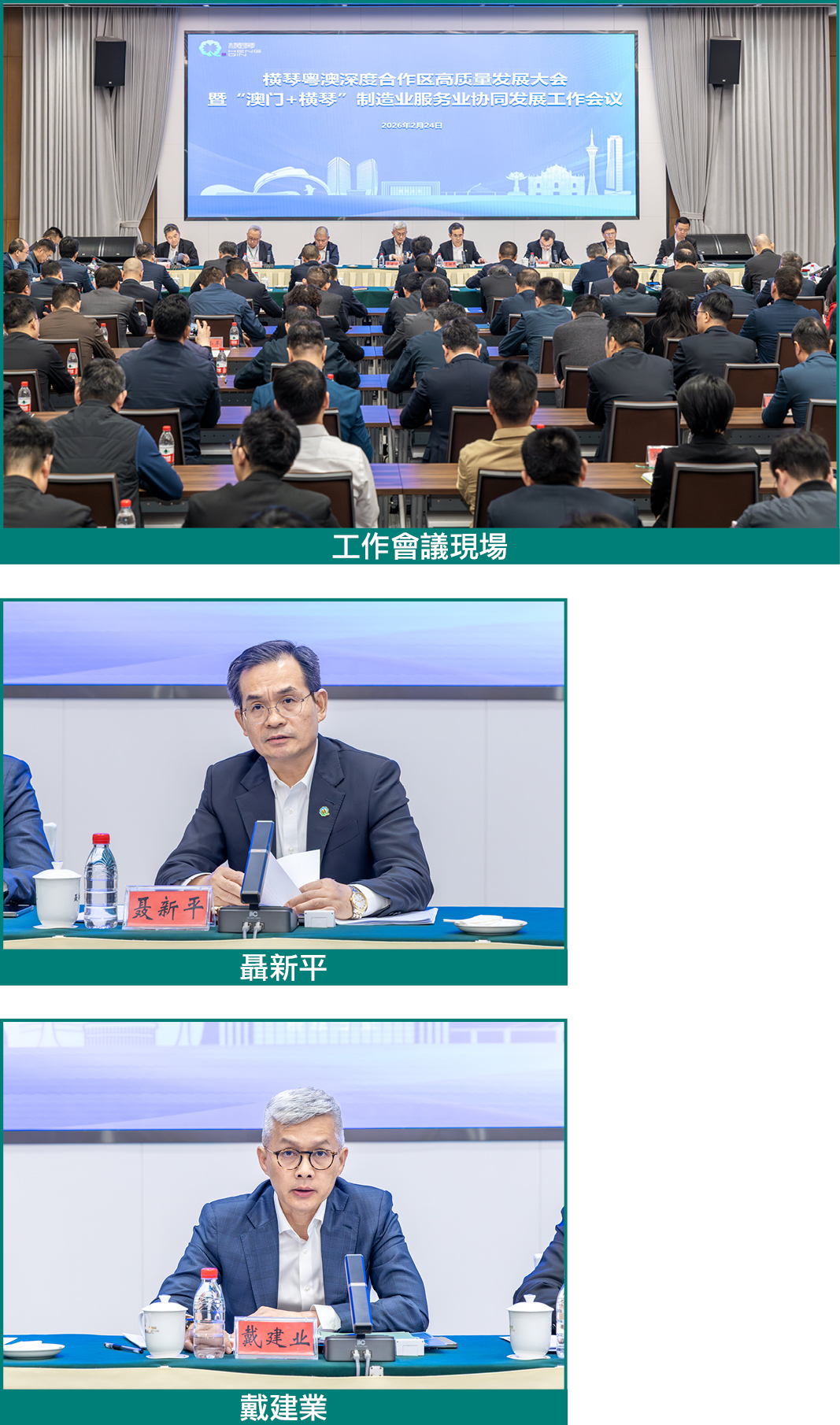 【本報訊】2月24日,馬年春節後第一個工作日,緊隨全省高質量發展大會的召開,橫琴粵澳深度合作區高質量發展大會暨“澳門+橫琴”製造業服務業協同發展工作會議拉開帷幕,以“起步即衝刺、開局即決戰”的責任感和使命感,凝心聚神抓發展、真抓實幹求實效,確保全年工作開好局、起好步,奮力推動合作區高質量發展再上新台階。合作區執委會主任戴建業,省委橫琴工委副書記、省橫琴辦主任、合作區執委會副主任聶新平參加會議並講話。