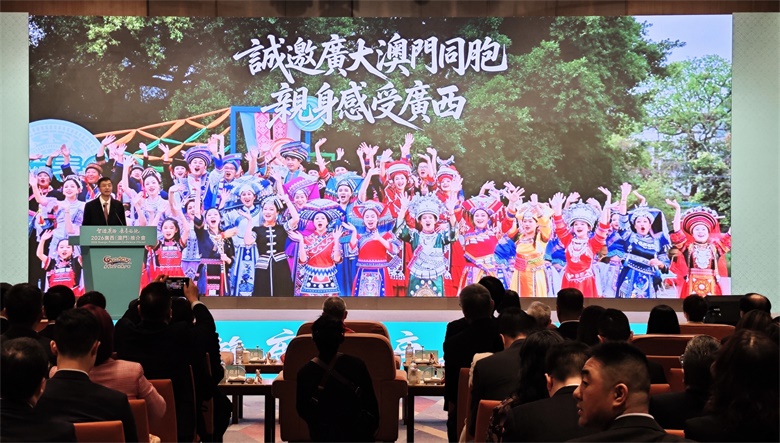 他指出,今日的廣西:創新活力加速迸發、開放格局全面拓展、綠色底色更加鮮明。希望通過旅遊文化的橋樑,進一步拓寬合作通道,深化兩地全方位、多領域、深層次的交流合作。誠邀廣大澳門同胞到廣西休閒旅遊、投資興業,親身感受甲天下的山水,多彩的民族風情,蓬勃的發展生機。