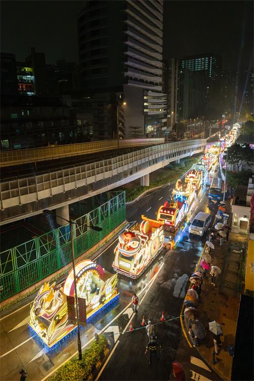 17部花車組成的隊伍由沙梨頭北街起步,途經青洲大馬路、拱形馬路、黑沙環馬路、慕拉士大馬路、黑沙環第四街、長壽大馬路、市場街至祐漢街市公園,即使遇上雨天,仍吸引不少民眾駐足觀賞。