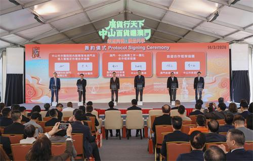 【本報訊】為深化中山與澳門的經貿協作,中山市商務局局長張峻峰和澳門特區招商投資促進局主席謝永強在“廣貨行天下·中山百貨進澳門—岐濠同春·優品共享”開幕式上簽署合作協議。雙方將重點加強外貿、投資、產業協同發展等領域的合作,充分發揮澳門“中國與葡語國家商貿合作服務平台”的優勢,進一步釋放中山製造業和商貿服務業的潛力,提升兩地商務工作一體化水準,實現資源互補、產業聯動、市場共融。