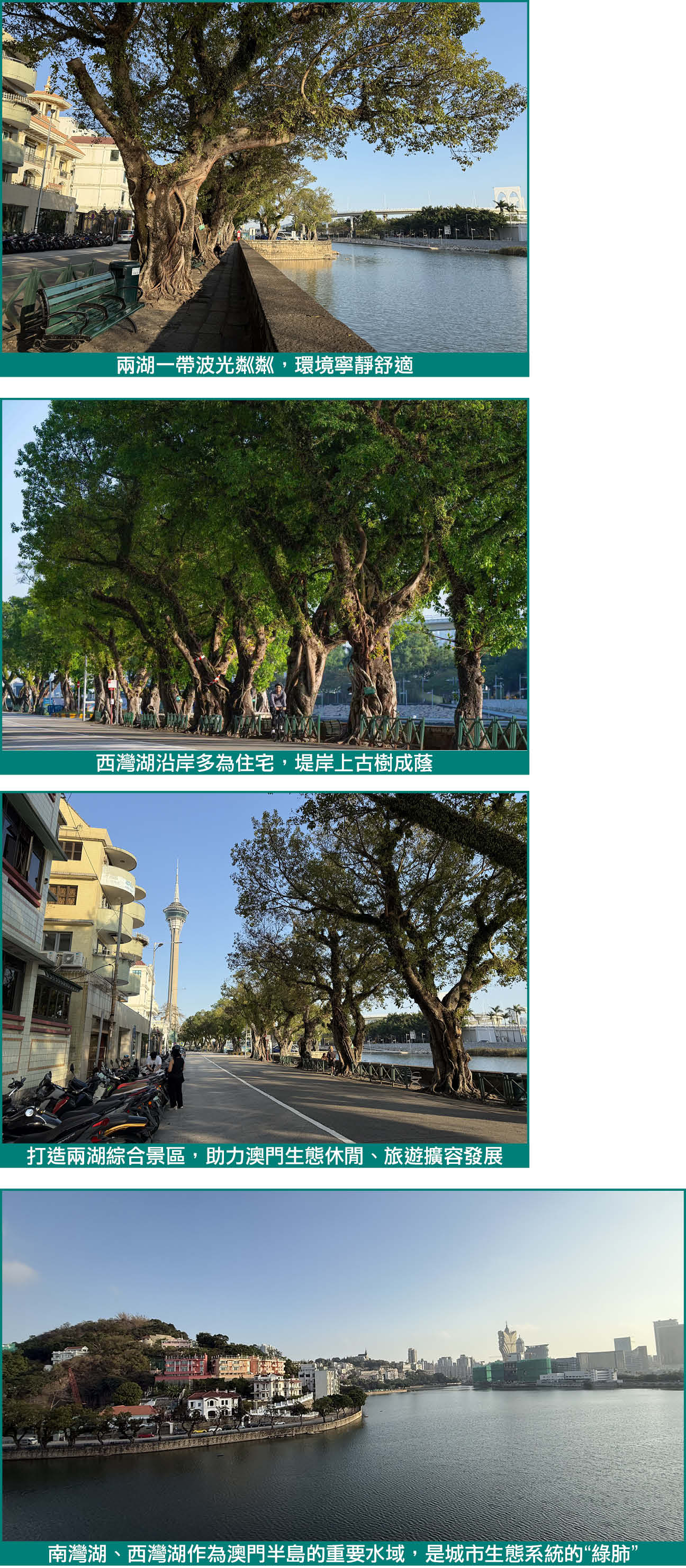 “兩湖綜合景區”的實施,要立足生態優先、文化為魂,打造集生態休閒、文化體驗、旅遊觀光於一體的城市名片,為澳門旅遊擴容提質提供重要支撐。