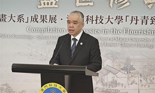 顧臻表示,“中國歷代繪畫大系”是2005年習近平主席親自批准,多年來一直高度重視、持續關注的一項規模浩大、縱貫歷史、橫跨中外的國家級重大文化工程。收錄海內外中國繪畫藏品一萬兩千餘件套、出版系列圖書68卷257冊。習主席肯定項目成果豐碩、意義重大、影響深遠,並勉勵我們繼續深入挖掘中華文明賡續傳承的基因密碼,為弘揚中華優秀傳統文化作出積極貢獻。浙大與澳科大也因“大系”進一步結緣,未來期待一道依託“大系”優質成果資源,發揮中西文明交流窗口優勢,推動藝術與科技的融合共鳴,深耕中華民族優秀文化的保護傳承,讓穿越千年的丹青藝術在新時代綻放更加燦爛的光彩。