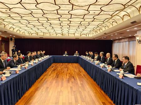立法會主席張永春率領公共行政事務跟進委員會一行日前赴浙江杭州參訪考察,與浙江省人大常委會黨組書記、副主任陳金彪座談,交流立法、監督等工作