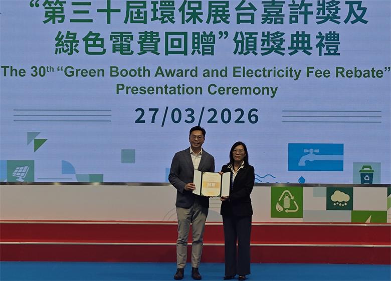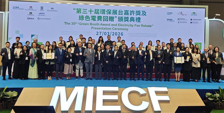 【本報訊】澳門展貿協會與澳門低碳發展協會合辦的第三十屆環保展台嘉許獎及綠色電費回贈頒獎禮於27日在2026MIECF期間舉行,活動同步舉辦了主辦機構與國際會議產業聯席委員會(JMIC)、貿易發展與標準合作組織(ODCCN)的合作簽署儀式,合作涵蓋綠色會展人才培訓、國際合作及中國碳中和會展活動案例徵集等內容。