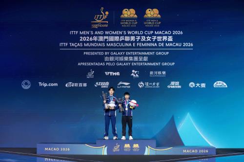 【本報訊】由國際乒乓球聯合會(ITTF)授權,體育局、銀河娛樂集團及世界乒乓球管理集團有限公司主辦、澳門乒乓總會協辦的“2026年澳門國際乒聯男子及女子世界盃 ─ 由銀河娛樂集團呈獻”,5日在銀河綜藝館上演準決賽及冠軍戰,男、女子世界盃冠軍分別由中國王楚欽及孫穎莎奪得。