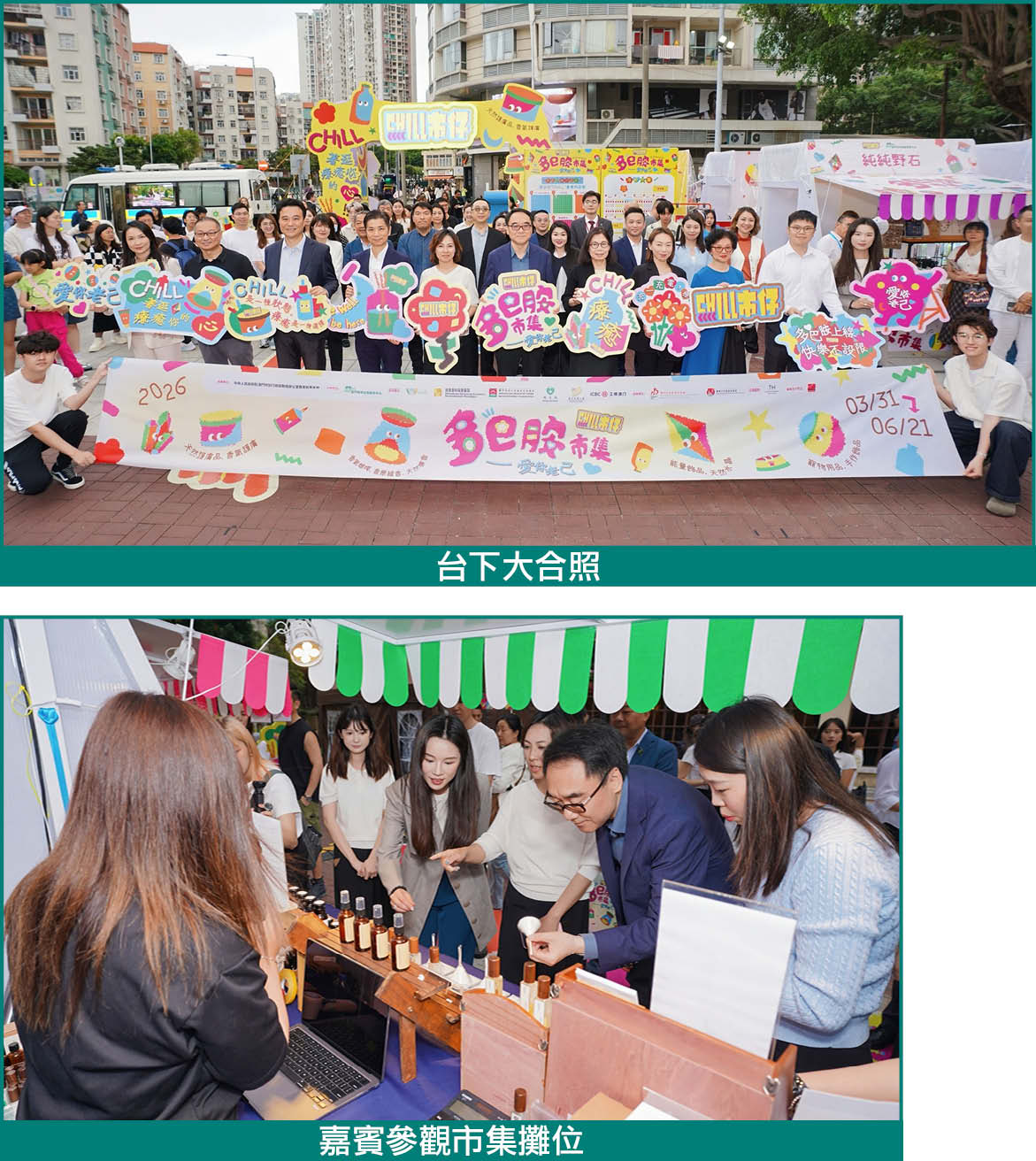 “CHILL市仔之多巴胺市集”自3月31日起對外開放,至6月21日,為期三個月,持續釋放創意與療癒活力。未來三個月,活動將持續推出多元主題體驗,歡迎市民及遊客前來感受療癒氛圍,支持澳門青年創業,共同擁抱多巴胺的快樂能量。